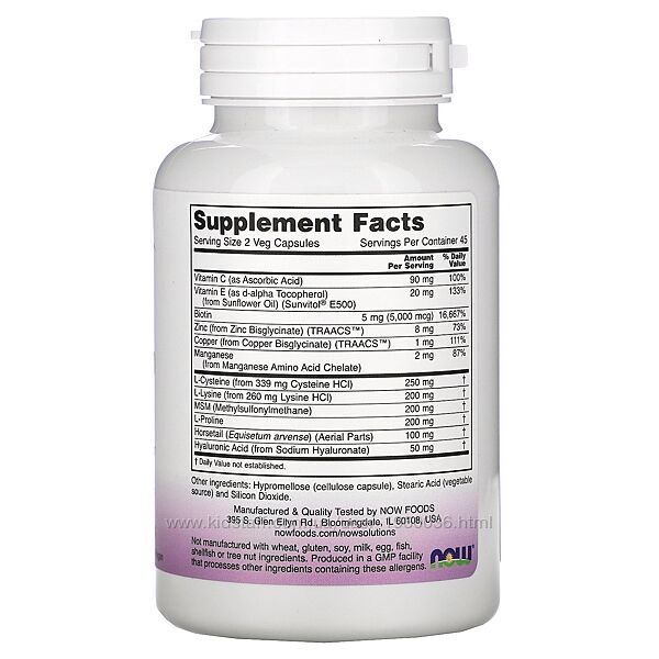 Комплекс "Hair,Skin & Nails" в капсулах от Now Foods этосовременный и удобный способ дополнить свой рацион незаменимыми витаминами имикроэлементами, благодаря которым Вы сможете укрепить и улучшить структуру