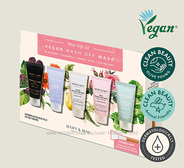 Подробное описание: Mary & May Vegan Wash off Mask MINI Gift Set набір масок для обличчя Корея