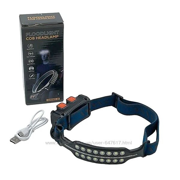 Подробное описание: Фонарь налобный w690-2 с датчиком движения, красный синий свет, type-c