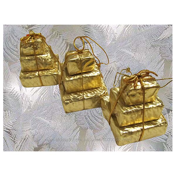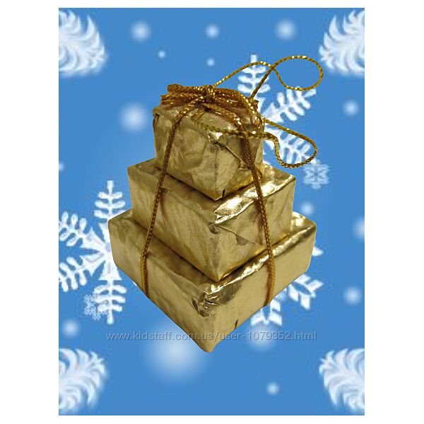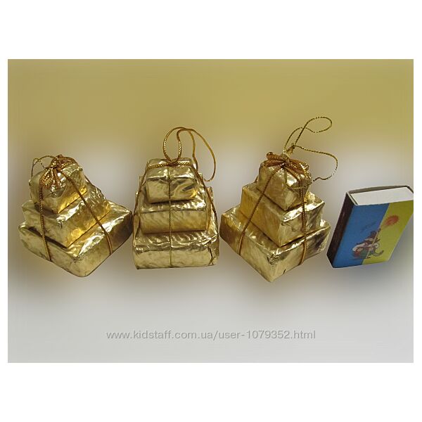 Производство:Англия Материал:пенопласт,фольга,шнур декоративный Тип игрушки:небьющаяся Цвет: золотистый Размер: 5 х 5 х 6 см Состояние:очень хорошее,показано на фото
