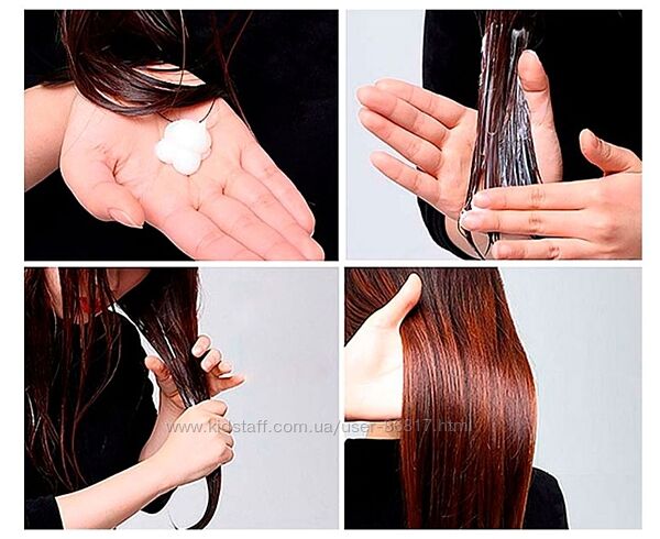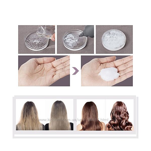 ❤️ Способ применения: необходимо смешать одну часть маски(аккуратнее она жидкая) и одну часть холодной воды (1:1). При взаимодействии сместь превратится в гелеобразную кашицу. Получившуюся смесь нанести на волосы на 8-10 секунд.