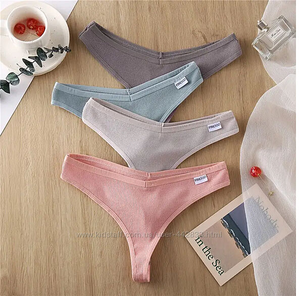 Трусики - стринги, трусики - бразилианы из хлопка, гладенькие, FINETOO.