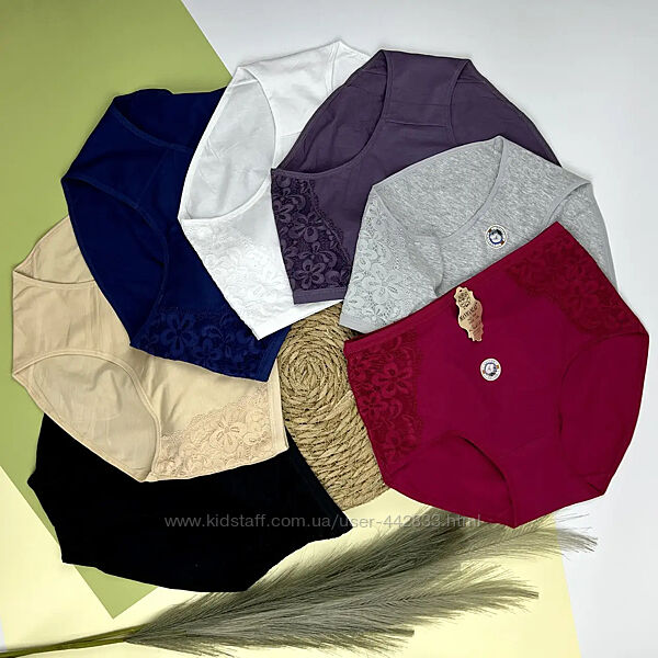 Большие глубокие трусики с кружевными вставками, хлопок.