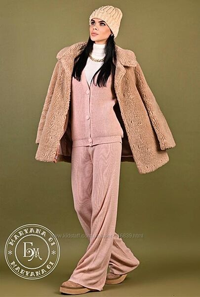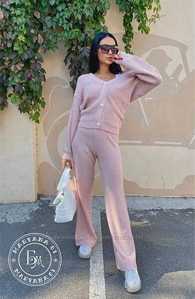 Подробное описание: Вязаный костюм с широкими штанами / пудровый