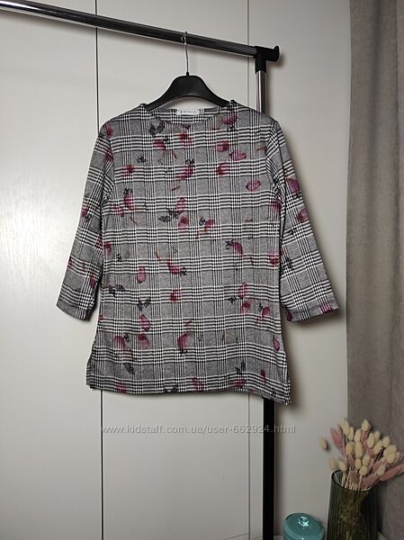 ☆ Стильная блуза, кофта, джемпер из плотной ткани и рукавом 3/4 в клетку и цветочным принтом.