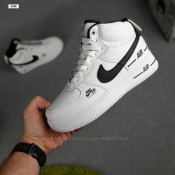 Подробное описание: Зимние кроссовки Nike Air Force 1 Double Air высокие белые с чёрным