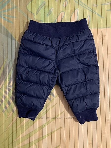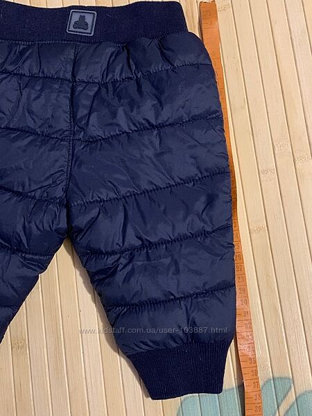 Теплые, удобные штанишки для малыша.Верх - очень мягкая болонья, внутри - приятная подкладка, есть утеплитель.