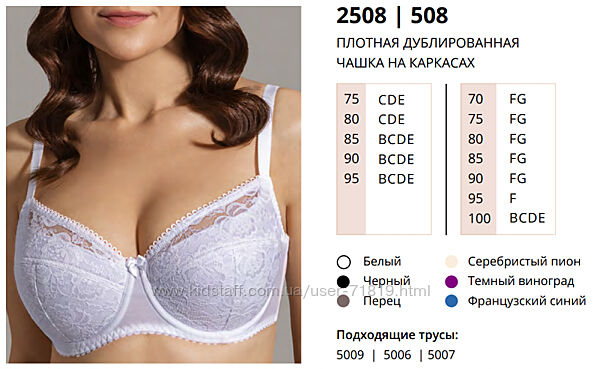 Бюстгальтер из эластичного кружева и эластичного трикотажного полотна. На каркасах. Чашки на дубляже с хлопком.Размерный ряд : 70 - 90 FG, 95 F, 100 ВСDE
