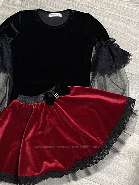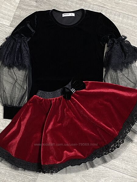ЮБОЧКА С МНОГОСЛОЙНЫМ ПОДЬЮБНИКОМ И БЛУЗА С ФАТИНОМ И КРУЖЕВОМ