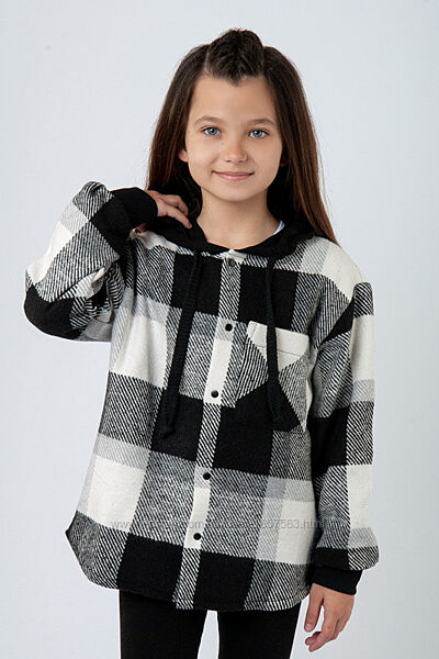 Ультрамодний хіт цього сезону - сорочка з теплої картатої байки супер якості для підлітків. Модель вільного крою з довгими рукавами, стильним контрастним капюшоном зі шнурками, застібкою на кнопки і манжетами з еластичного матеріалу по низу рукавів. Сорочка представлена в різних кольорах на будь-який смак, не залишить байдужими юних модників. Доповнити образ рекомендується футболкою або топом, стильними джинсами, об´ємними кросівками або черевиками на шнурівці. Тканина преміум якості, дуже щільна і тепла.