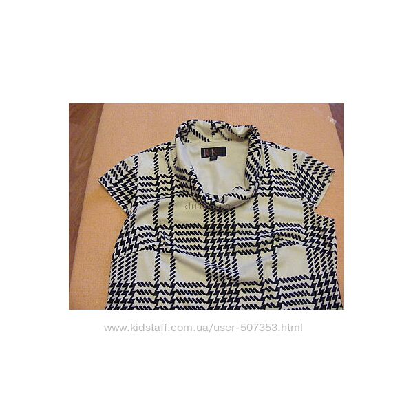 Фирма R&K. Originals petite. Состав 95% полиэстер, 5% спандекс. Цена на бирке 35 $. Покупала в Америке по скидке. Мягкая, приятная ткань., с карманами, цвет blk/cream. Воротник хомут, с карманами.Размер:американский РS.