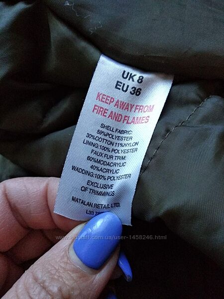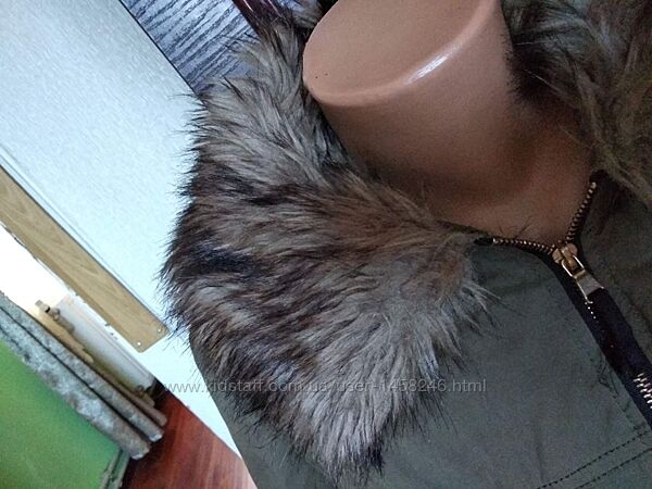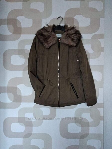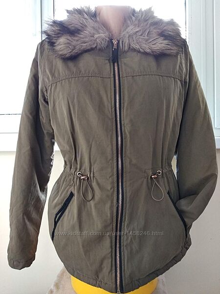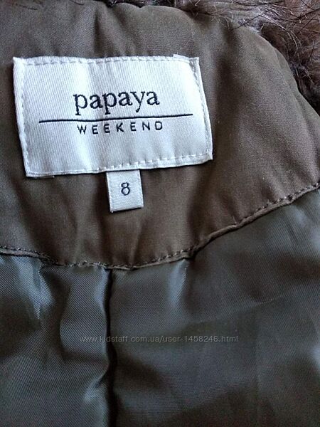 Красивая парка Papaya. размер 8.( 42 / 44). 59% полиэстер 30 % коттон 11 % нейлон. состояние идеальное. мех на воротнике очень красивый. неснимается. курточка легкая и теплая.сезон - весна. осень.по талии можно