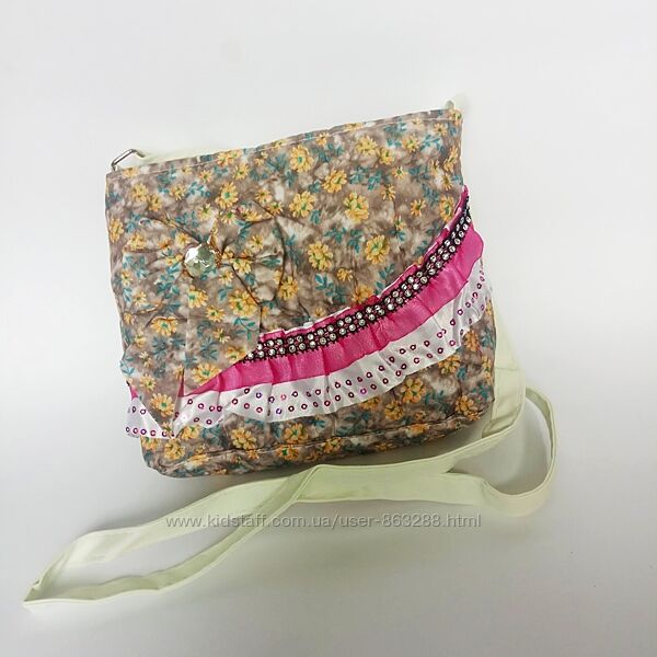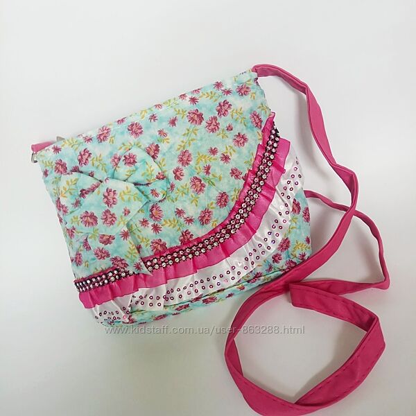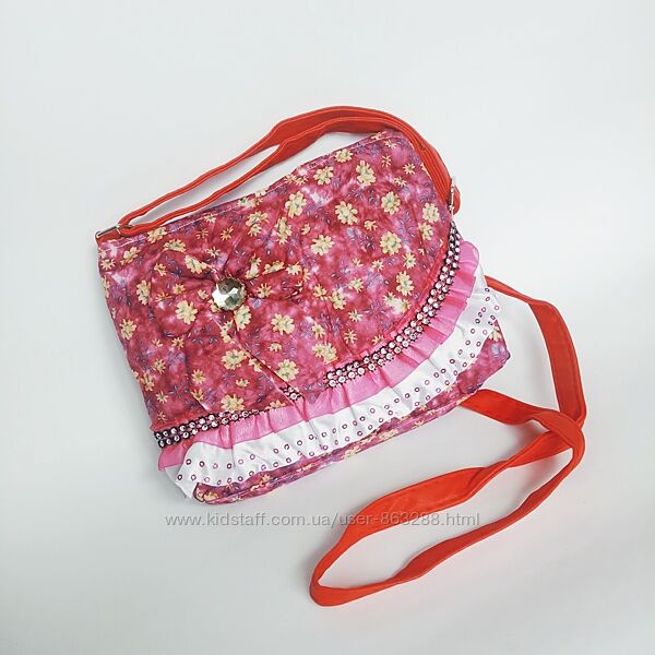 Небольшая симпатичная сумочка подойдет для девочки дошкольницы. Одно отделение, закрывается на молнию, внутри подкладка. Ремешок из кожзама, регулируется по длине, можно носить через плечо.Размер 20*17 см.