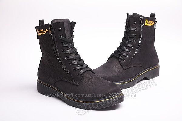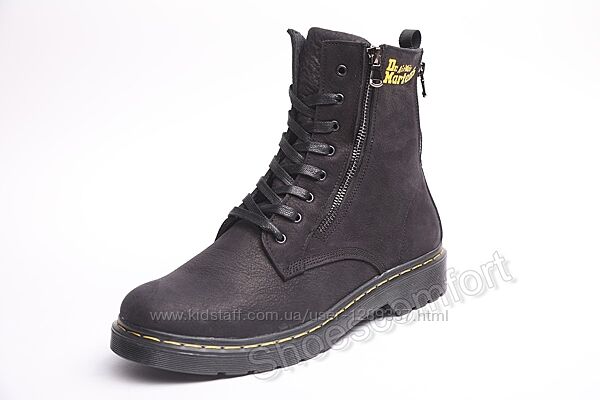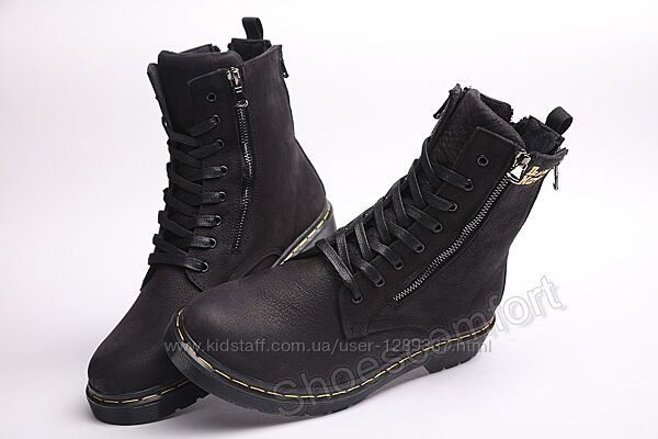 Подробное описание: Кожаные зимние ботинки, берцы, сапоги в стиле Dr. Martens черные