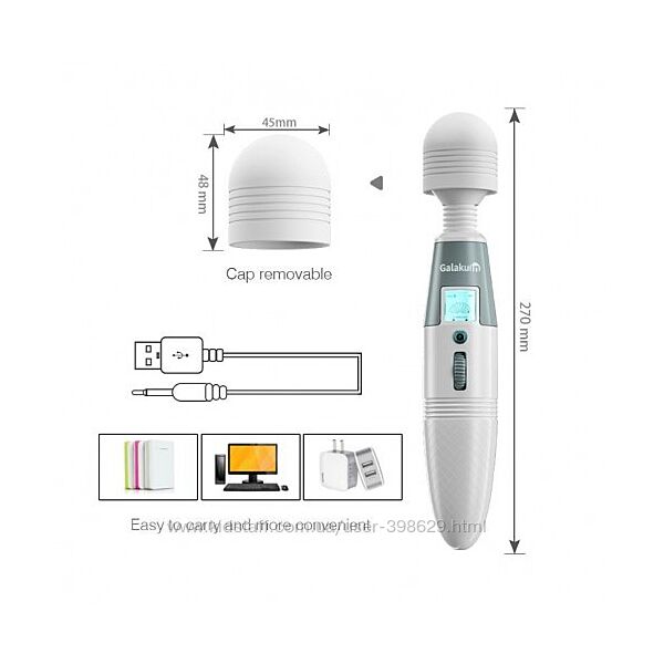 Великолепный роскошный перезаряжаемый мощный вибратор с плавающей головкой и дисплеем. На дисплее отображается уровень заряда, мощность и тип вибрации. Подходит для массажа практически любого участка тела. Массажер имеет 8 скоростей и 8 режимов вибрации. Оснащен встроенным аккумулятором, заряжается от USB шнураХарактеристики:размеры - 270 мм * 45 ммпитание - USB заряд