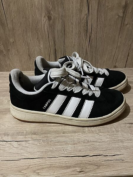 Чорні кросівки Adidas campus. Верх - замша. Вказано р. 39 1/3, але фактично маломірять- по стельці 24,5см.Дуже зручні в носці. Верх в ідеальному стані, тільки пошкоджені всередині задніки- на фото показала.