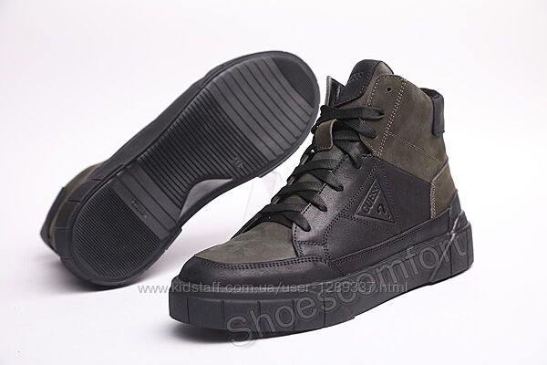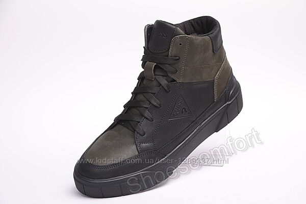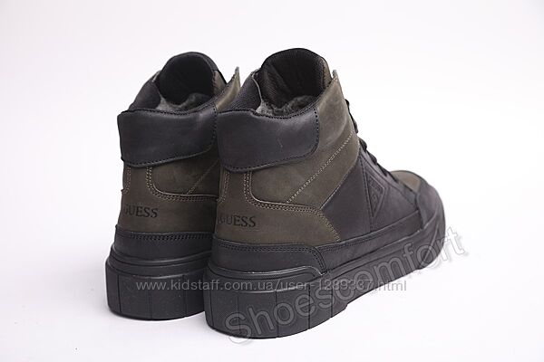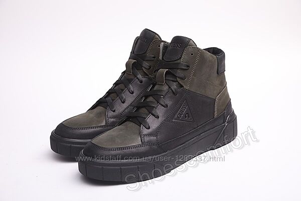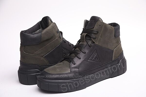 Подробное описание: Мужские зимние кожаные ботинки Guess Los Angeles olive / black