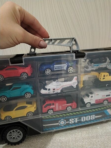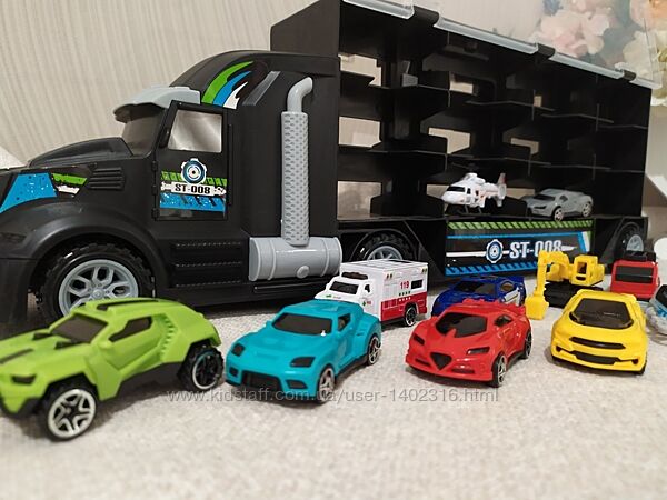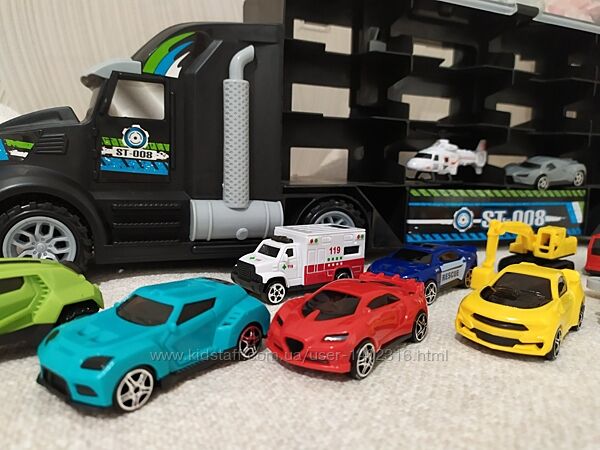 Подробное описание: Cупер трейлер 11 машин и вертоліт аналог Хот Вилс трек машина автотрек