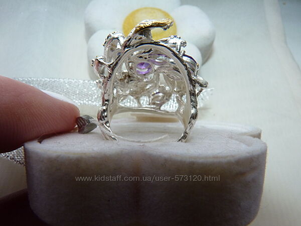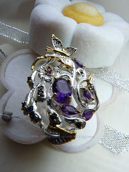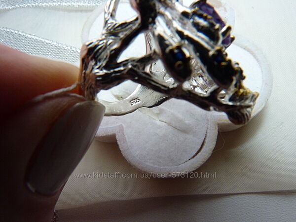 Кольцо с аметистами, гранат, цирконы, р 17 - 17.5, позолота, серебро 925 !Вес - 14.9 гр !