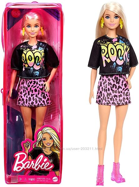 Только оригинальный товар!Кукла Барби Модница Barbie Fashionistas Doll #155 with Long Blonde Hair Wearing “Rock” Graphic T-Shirt .