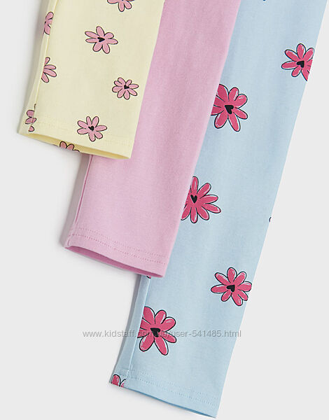 Легінси із комплекту, з м´якого бавовняного трикотажу. У поясі широка гумка. Продаються поштучно, бірка на одних. З колекції дитячого одягу польського виробника Sinsay.Розмір у наявності: 9-10 років, зріст 140 см, кольори в наявності: жовтий, рожевий, блакитний