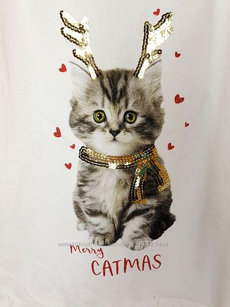 Спереди милый котенок с вышивкой из паеток и надпись Catmas .