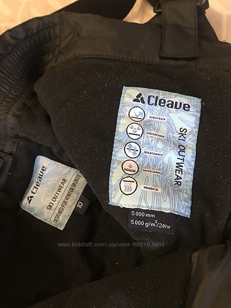 Гірськолижні зимові мембранні штани Cleave, р.10років (на зріст орієнтовно 146).В ідеальному стані, скористались ними на одну поїздку в гори.