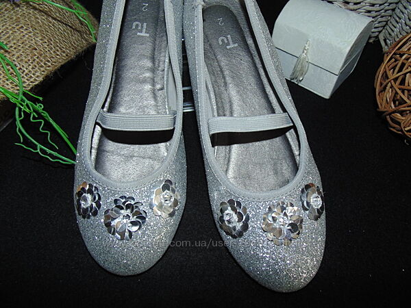Серебристые балетки TU 34(2)размер, по стельке 22 см.