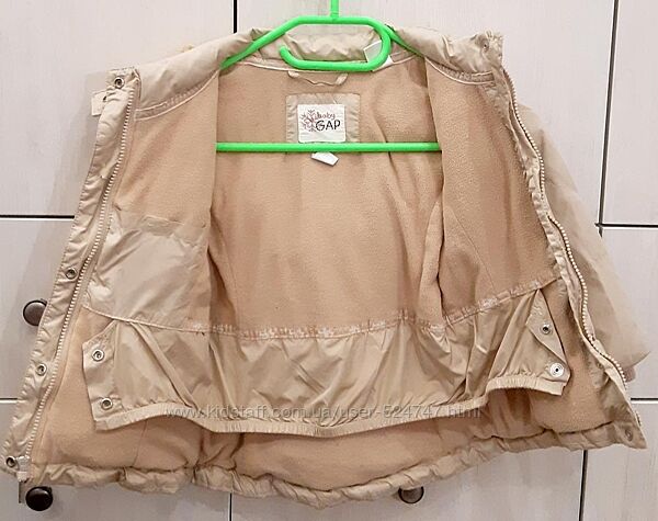 Классная, теплая, бежевая куртка Baby Gap с теплым капюшоном для мальчика или девочки ( унисекс) на холодную осень-весну и зиму до -3, на рост 104см, 4года.Состояние очень хорошее, из минусов- оторвалась внутренняя кнопка (не функциональная)- на фото.