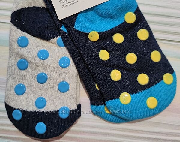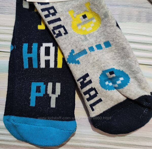 Синьо-сірі махрові шкарпетки з принтом від італійського бренду OVS для хлопчика у розмірі 21-22, 23-24 (с12).На стопах тормозки.