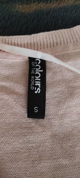Джемпер пуловер свитер Colours of the World, размер указан S евро, 40-42 размер наш. подойдёт на XS/S.Лёгкий тонкой вязки пуловер. V-образный вырез горловины, цвет пудрово-розовый