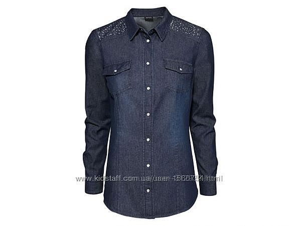 Женская джинсовая рубашка со стразами на плечах размер евро 38 Esmara