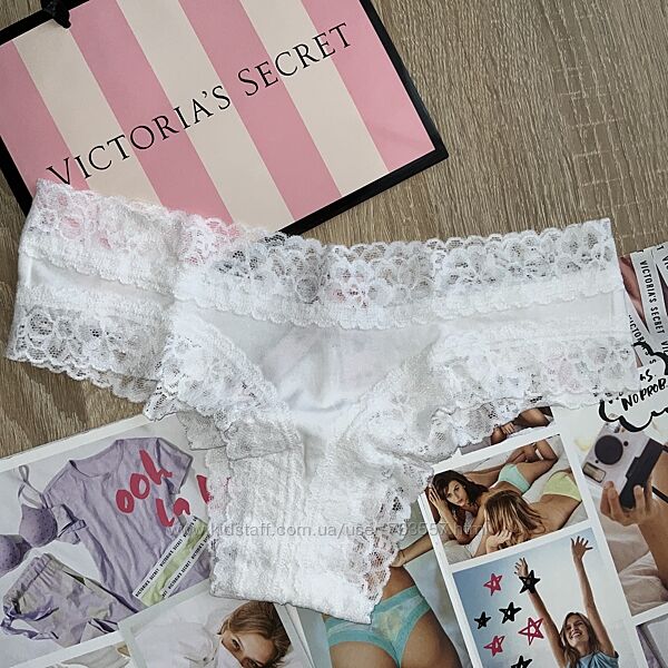 Оригінал, з офіційного сайту. Красиві трусикі для повсякденного носіння Cheeky з сайту Victoria´s Secret , з ніжним мережевом по периметру, склад: 57% бавовна, 38% модал, 5% еластан .А також модель безшовна у розмірі S, два кольори, склад: 71% поліамід, 29% еластан.