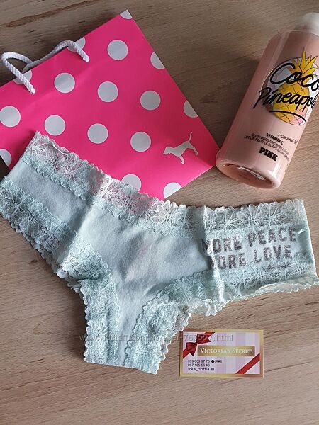 Оригінал, з офіційного сайту. Красиві трусикі для повсякденного носіння Cheekster, молодіжна серія сайта Victoria´s Secret - PINK , маломірять, з ніжним мережевом по периметру, склад: 91% бавовна, 9% еластан татканина у рубчик, склад: 55% бавовна 37% полиестр, 8% еластан.