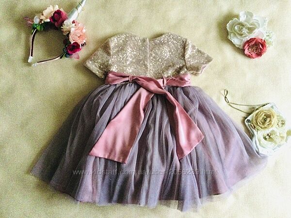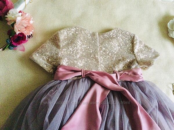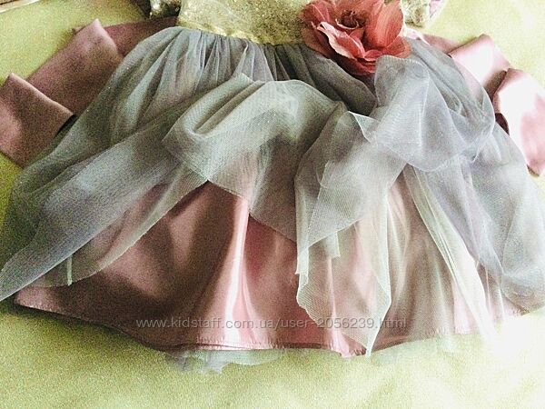 MONSOON. Дорогая фирма. Невероятное платье. Супер-Пышное. Верх- расшит золотыми пайетками, Шикарно переливается и блестит. Низ: супер- пышная юбка на многослойных фатиновых подююбниках , верхний слой усыпан блёстками. Талия затягивается огромным бантом в тон яркой атласной подкладки. На талии огромный шелковый цветок в 3-D формате. Состояние идеальное. Длина 55; подмышки 28Другие объявления продавца