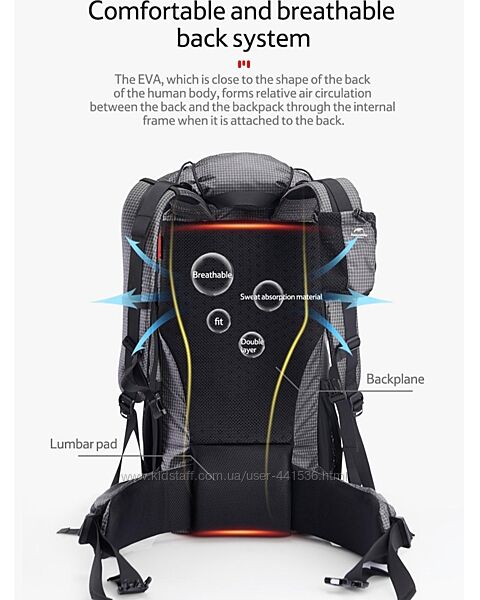 Туристичний рюкзак Naturehike (Rock 40L+5L hiking backpack, NH20BB113 , 6927595765418 ) з алюмінієвою рамою. Великий альпіністський рюкзак має кишені в різних положеннях для комфорту під час сходження, а також має дощовик і функцію гідратації. За допомогою компресійного ременя зверху та з обох боків сумки можна щільно зав´язати такі речі, як трекінгові палиці та спальні мішки. Окрема кишеня на задній частині рюкзака дає змогу зручно зберігати взуття. Велика модель, в якій можна зберігати дорожні предмети, як-от спальні мішки, намети, пляшки, трекінгові палиці, одяг, взуття, та ідеально підходить для альпінізму й тривалих подорожей. Ергономічна подушка для спини та плечова подушка зменшують тяжкість у плечі завдяки своїй вишуканій товщині. Подушка спинки має сітчасту подушку з відмінною повітропроникністю, тому вона не стане задушливою, навіть якщо ви використовуєте її протягом тривалого часу, і ви можете носити її з комфортом. Легкий і зручний для перенесення рюкзак, а також компактний і відповідний для активного відпочинку. Навіть якщо ви носите його на спині протягом тривалого часу, ви не втомитеся швидко, і вам буде комфортно носити його на спині. Тканина виготовлена з високоякісного нейлону 420D, який не тільки міцний і довговічний, але також запобігає появі тріщин і подряпин, а також є водонепроникним, що запобігає потраплянню невеликого дощу.Особливості: повітропроникний, ультралегкий, водонепроникний