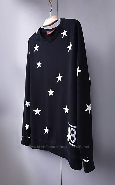 Свободная кофта с длинными рукавами и без капюшона; особенность кофты - круглая горловина, резинки на манжетах и по низу, отсутствие застежки.Подойдет для демисезонного периода; сочетается со спортивными штанами прямого кроя; также свитшот подойдёт для стиля casual ,дополнив образ зауженными джинсами.Размер - S/М
