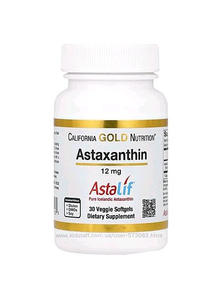 Подробное описание: Астаксантин 12 мг - 30 капсул / California Gold Nutrition, США