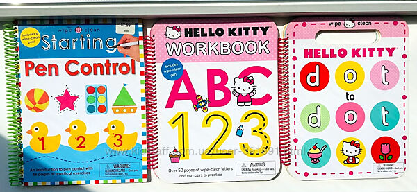 Яркая книга развивающая Английский язык Рисуй Стирай для малышей Hello KittyВ наличии 3 разные тетради Work book (размер 28см х 23см х 1см)=355грн. и 3 разные книжки в твердом переплете (размер 13см х 13см х 3см)=165грн.