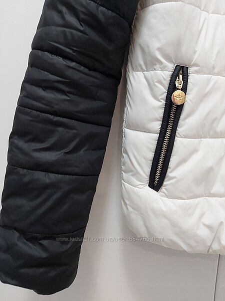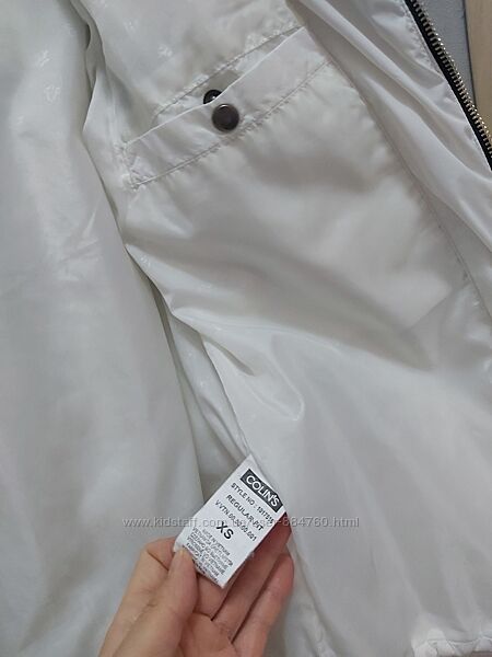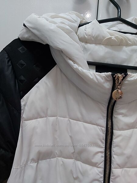 Стильная объемная курточка с капюшоном (не снимается) в отличном состоянии от известного бренда Colin´s, очень красивая.Белый молочный цвет с черными рукавами.