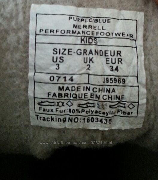 Утепленные водонепроницаемые сапожки Merrell Spruzzi Waterproof Boot в размере 3US/34EUR (около 22.5см по стельке, комбинированный верх - натуральная и искусственная кожа, внутри утепление OPTI-Warm Insulation™ 200 грамм) в очень хорошем состоянии (трещин нет).