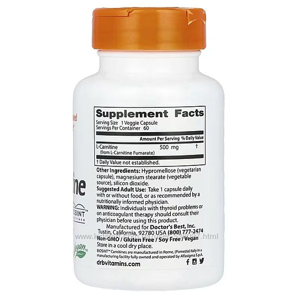 Подробное описание: Doctor´s Best фумарат L-карнитина с Biosint Carnitine. 500 мг, 60к.