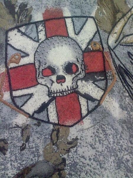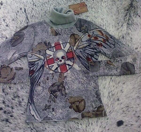 Швы оверлочены нарочито грубовато, распорехи неглубокие внизу и на рукавах,*прическа*черепушки расшита мелким серебристым бисером. Абсолютно новый,с этикетками. . Мерки сняты в ненатянутом состоянии. Маркировка М, но маломерка, смотрите внимательно мерочки! Длина по спинке 49.5 см, между подмышками 42 см,, длина рукава вместе с плечевым швом 74.5 см,