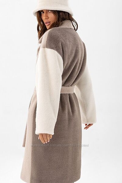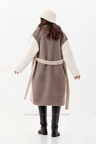 Дизайнерское пальто из экомеха альпака Амура от Emass. Экошуба из экомеха.