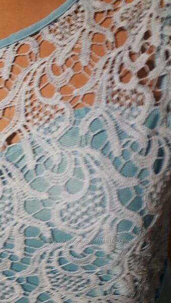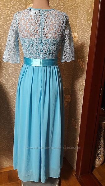 Очень красивое платье небесно-голубого цвета с шикарным кружевным верхомСостав полиэстер