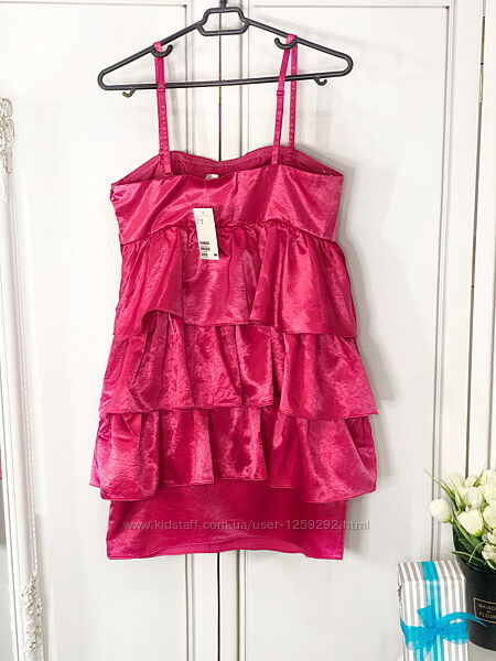 ТОРГА НЕТ!ВСЕ ЦЕНЫ ОКОНЧАТЕЛЬНЫЕ! Весь товар в наличии!Отправка в день/след.день после оплаты. Обмен/возврат в течении суток -за счет покупателя. Есть наложка(с предоплатой 100 грн) Доставка: Укрпочтой,Новой почтой. Приятных покупок и хорошего настроения:) Платье с оборками H&M, р.S неоново-розовое ,нарядное,р.указан 44/16,но идет на небольшой ОГ 80-85 СМ(СМОТРИТЕ ЗАМЕРЫ) 100 % полиэстр(плотный атлас) Длина 65 см ПОГ 40-43 Полуобхват под грудью 37 см(полный обхват 74) Высота лифа 14 см,бретельки съемные регулируются,внутри силиконовый фиксаторы(чтоб не сползало с груди),в чашках-вертикальные косточки) ПОТ 42 ПОБ 48