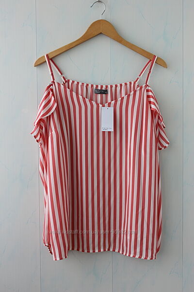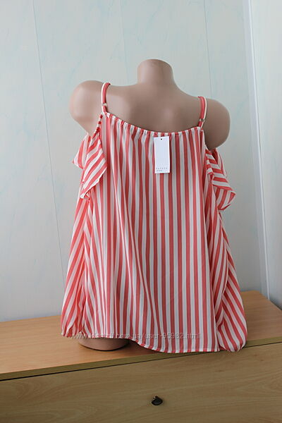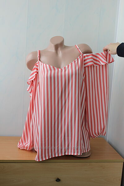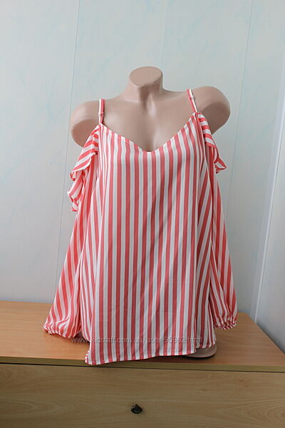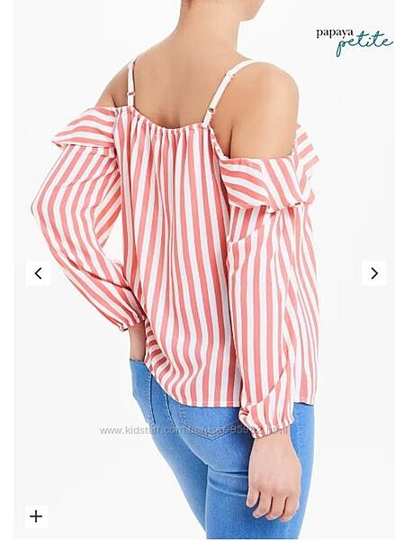 Блуза в смужку papaya, ніжна, приємна блуза в смужку, струнить.Papaya Stripe Ruffle Cold Shoulder Blouse