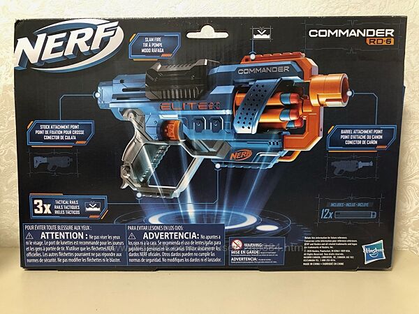 Бластер NERF Elite 2.0 Commander RD-6 Blaster, 12 Official Darts, 6-Dart Rotating Drum, Tactical Rails, Barrel and Stock Attachment Points — интересный и увлекательный подарок для ребенка. Набор подойдет для мальчиков, которые любят пострелять.Пистолет изготовлен из качественного сертифицированного прочного