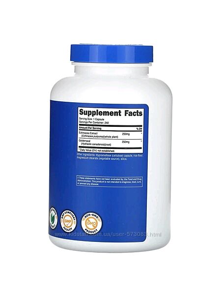 Подробное описание: Nutricost корень эхинацеи и желтокорня 500 мг - 240 капсул / США