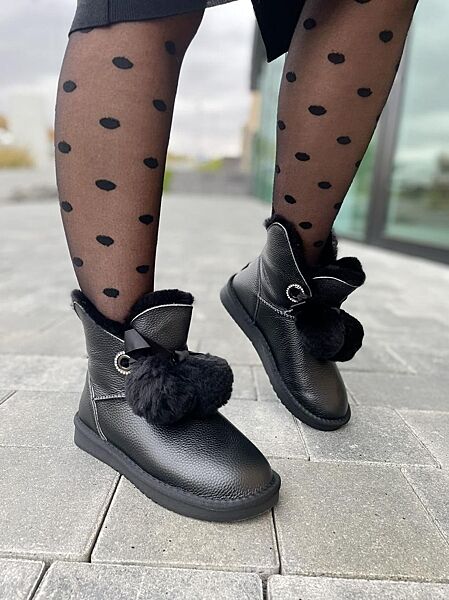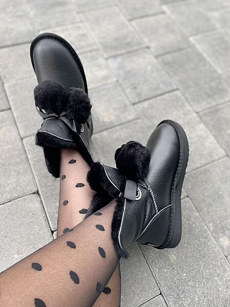 Угги женские LONZA A8032-7A черные зима кожа натуральная